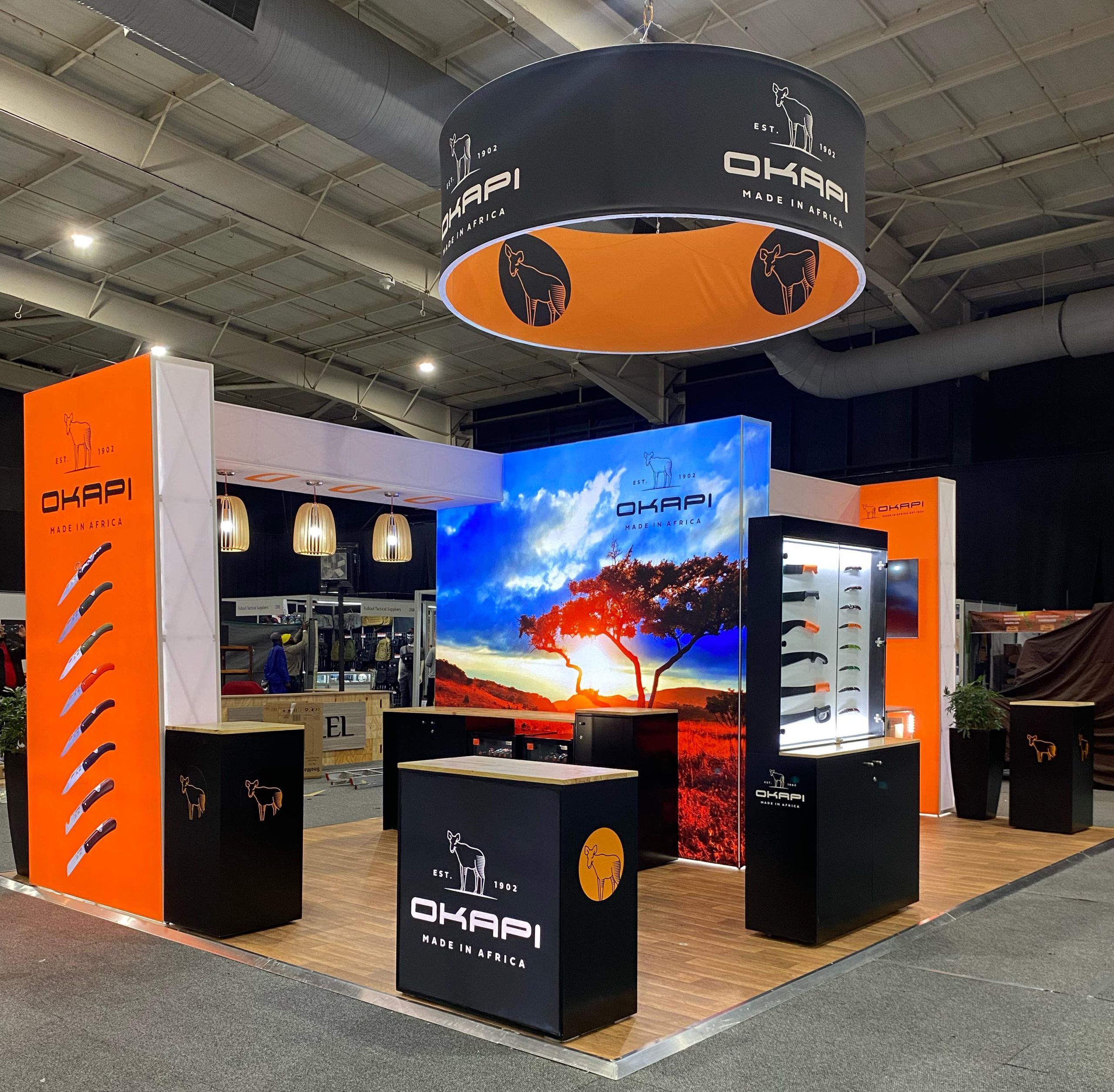 The Okapi stand (Best Medium Green Stand – Silver) at Huntex Expo highlights the benefits of lightweight, modular systems. Built using Scan Display’s Fabric Pop-up Stand, the reusable structure and fabric graphics are easy to transport and self-assemble, reducing on-site labour. Custom cabinets were designed for reuse in Okapi’s showroom post-event.